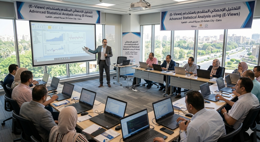 تغطي الدورة أهم الأساليب الإحصائية مثل تحليل الانحدار، واختبار الفرضيات، وتحليل السلاسل الزمنية، مع تطبيقات عملية باستخدام برنامج EViews. كما يتعلم المشاركون كيفية التعامل مع البيانات الاقتصادية والمالية، وبناء النماذج الإحصائية واختبار كفاءتها.