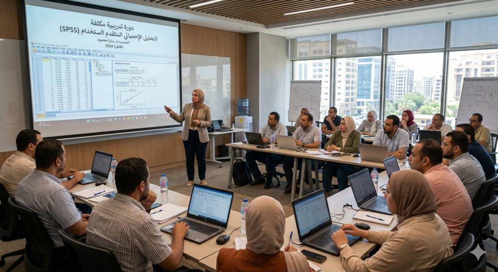 تقدّم هذه الدورة تدريبًا عمليًا متقدمًا على استخدام برنامج IBM SPSS Statistics لتنفيذ التحليلات الإحصائية الاحترافية المعتمدة في الأبحاث الأكاديمية والتطبيقات العملية. تركز الدورة على تجهيز البيانات وتنظيفها، واختيار الاختبار الإحصائي المناسب، وتنفيذ أساليب تحليل متقدمة مثل الانحدار المتعدد، وتحليل التباين، والتحليل العاملي، واختبارات الفرضيات، مع شرح دقيق لكيفية قراءة المخرجات الإحصائية وتفسيرها وكتابتها بشكل علمي صحيح. من خلال تطبيقات عملية ودراسات حالة، يكتسب المتدرب القدرة على إجراء تحليل إحصائي متكامل وإعداد تقارير احترافية مبنية على نتائج دقيقة باستخدام SPSS.